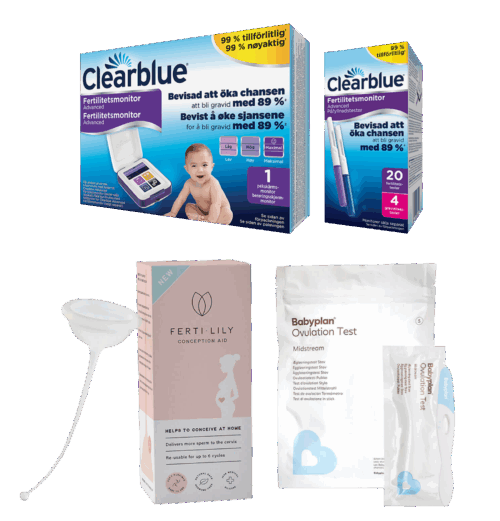 Utover graviditetstester og eggløsningstester så selger vi også folsyre/folinsyre. Du kan allerede begynne å ta kosttilskudd når du har planlagt at du vil bli gravid i nærmeste fremtid. Har det ennå ikke lykkes deg å bli gravid, så ta gjerne en titt på de produkter vi har som kan hjelpe storken på vei.
