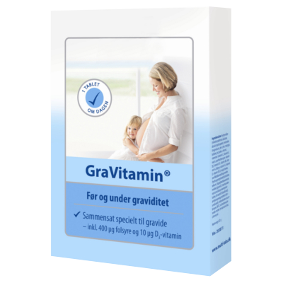 Gravitamin inneholder vitaminer og mineraler som er viktig og få i seg for den gravide, for at fosteret skal få dekket sitt behov og utvikle seg optimalt. Vitaminer er viktig for både mor og barn både før og under graviditeten. Gravitamin dekker behovet hos den gravide og inneholder også folsyre. Du får alle vitaminer og mineraler i en tablett gjennom kosttilskuddet Gravitamin. Gravitamin er et fint kosttilskudd å få i seg under graviditeten, like viktig som etter barnet er født, i ammeperioden. Gravitamin inneholder folsyre i tillegg til vitaminer og mineraler.