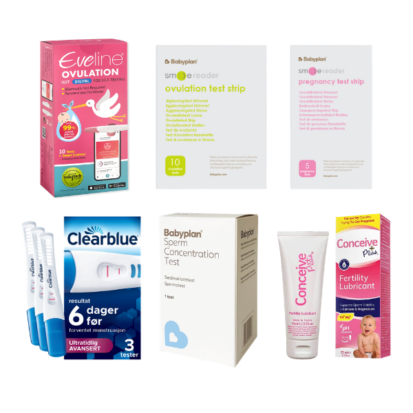 - Sædtest + fertilitetsglidekrem + tidlig graviditetstest — alt i én pakke
